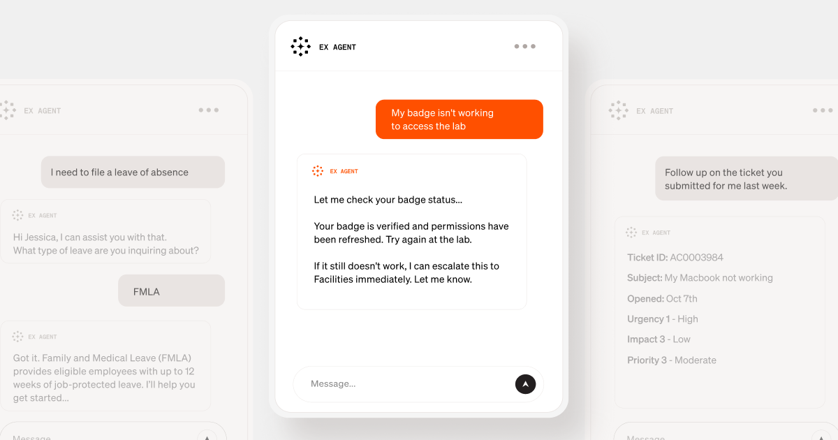 - Pulls information from multiple sources including HR systems, knowledge bases, and enterprise apps