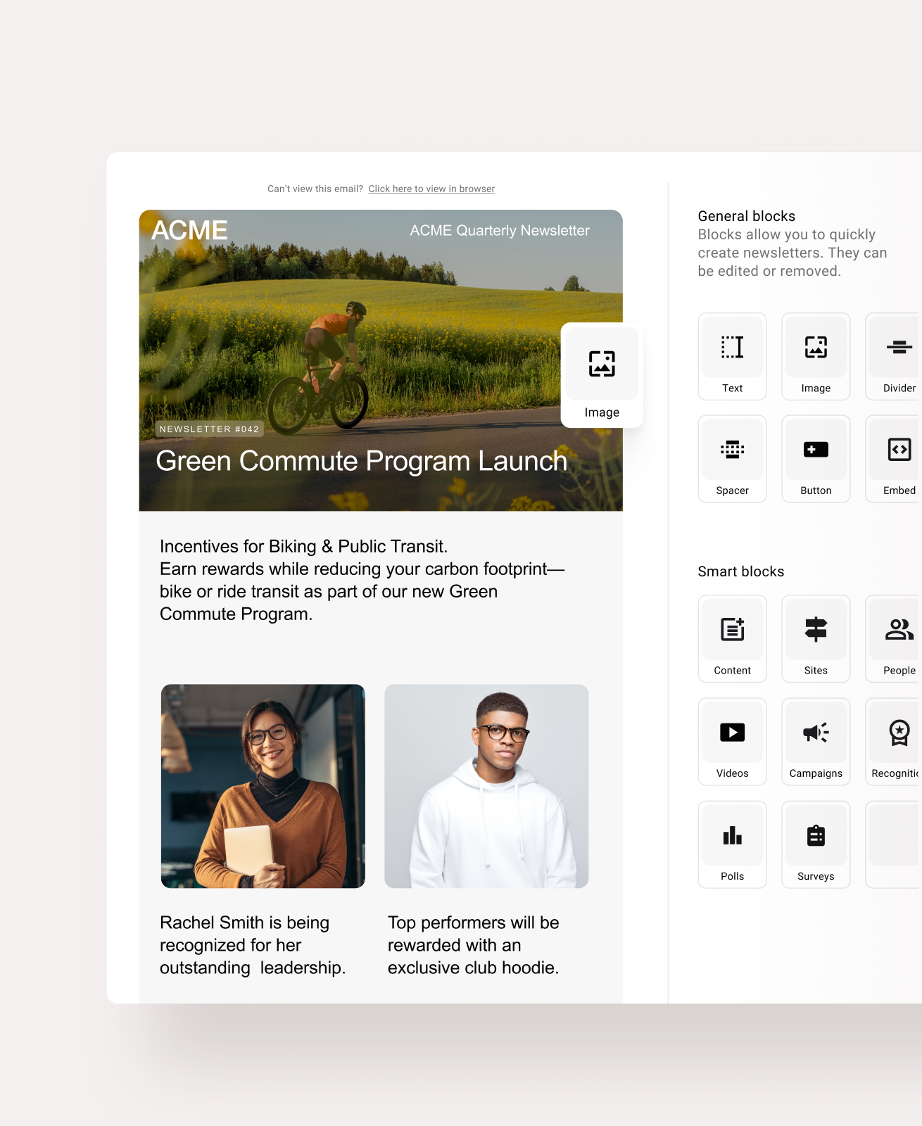 Reach employees anywhere with tailored communications across web, mobile, email and more.